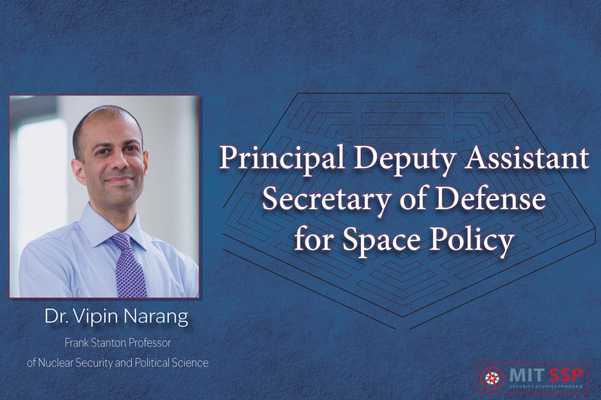 MIT Political Science and the MIT Security Studies Program are proud to announce that Vipin Narang, Frank Stanton Professor of Nuclear Security and Political Science, was sworn in as Principal Deputy Assistant Secretary of Defense for Space Policy on Monday, March 28, 2022.