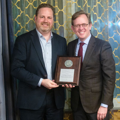 Dr. Brian Weeden, Director of Program Planning for Secure World Foundation, was awarded the General James Doolittle Award by MIT's Security Studies Program on Tuesday, April 25. He is pictured with MIT SSP Director M. Taylor Fravel.